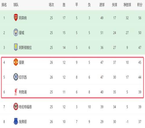 值得一提的是,除了曼联之外,这一夜切尔西也没能击败利兹联,他们在主场2-2战平对手,也才拿到1分。截至目前,曼联依然排名第四,切尔西则以1分之差,排名第五。虽然争四2强都没能获胜,但是他们的位置,暂时还非常稳固。