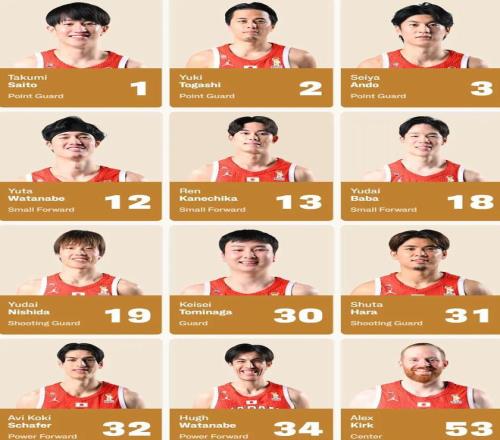 日本男篮12人名单如下: